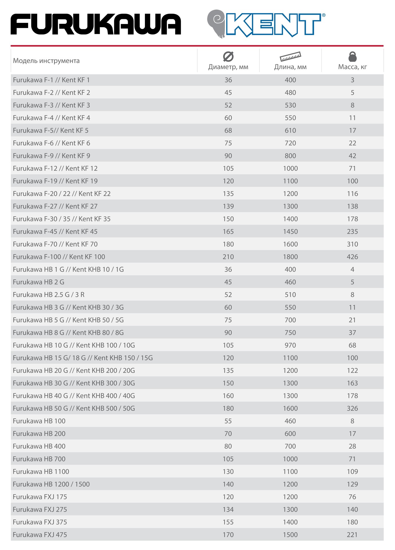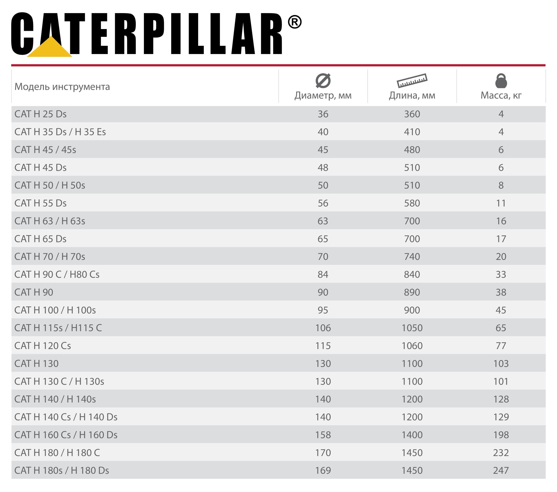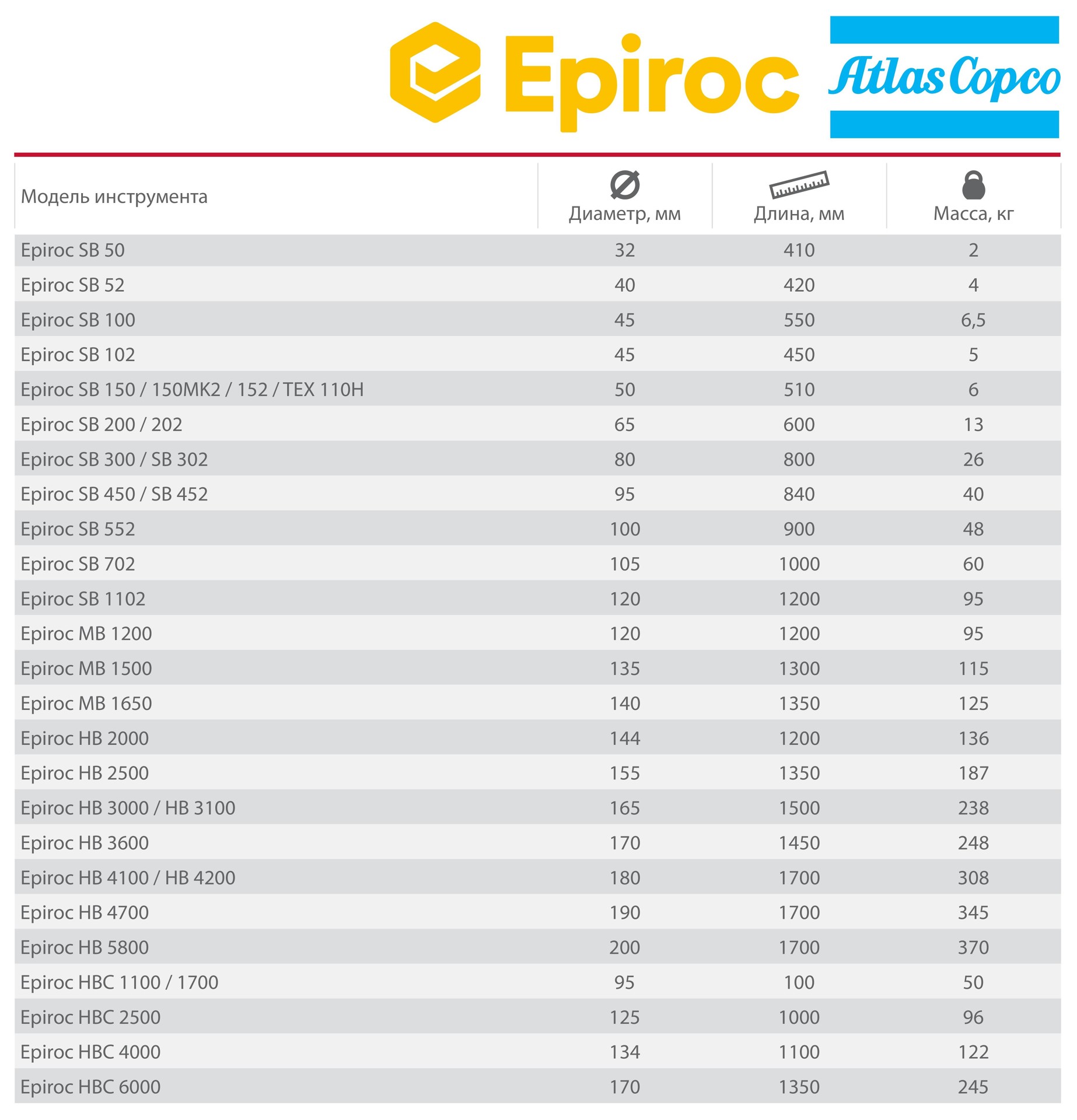 Мы уже изготовили рабочий инструмент для следующих марок гидромолотов