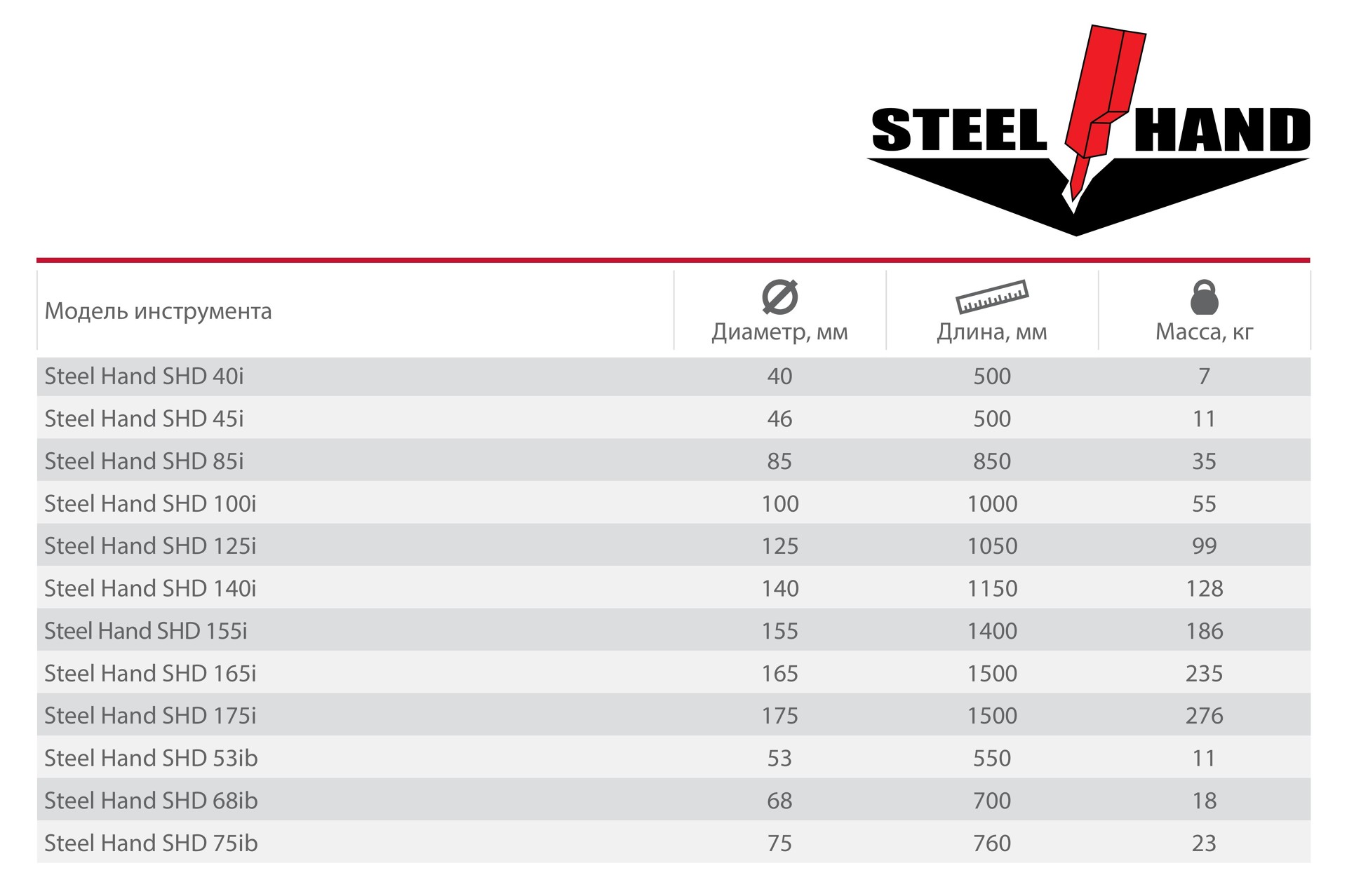 Весь рабочий инструмент изготавливается из высоколегированной стали, поставляемой по спецзаказу напрямую с металлургического предприятия. Сталь, разработанная с учетом многолетнего опыта эксплуатации в российских условиях, имеет оптимальный баланс между твердостью и прочностью, поэтому, инструмент нашего производства превосходит все известные нам зарубежные аналоги. Контроль качества сменного инструмента осуществляется измерением твердости в нескольких местах по всей длине инструмента, отсутствие микротрещин определяется акустическим и магнитно-порошковым методами.